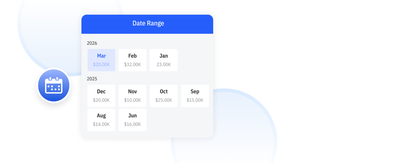 Check your sales performance across any selected time period. Understand daily, monthly, or seasonal activity with clear, organized data.