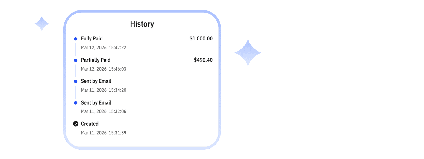 View the full history of payment status changes for every invoice. Stay transparent and avoid confusion about when and how payments were recorded.
