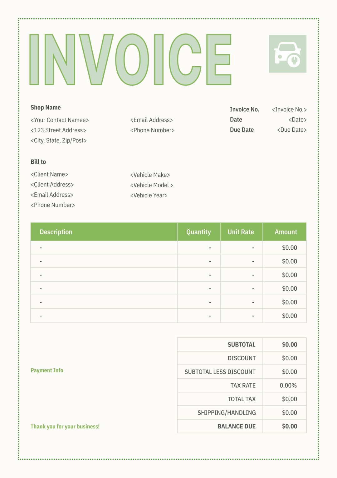 Auto Repair Invoice Templates