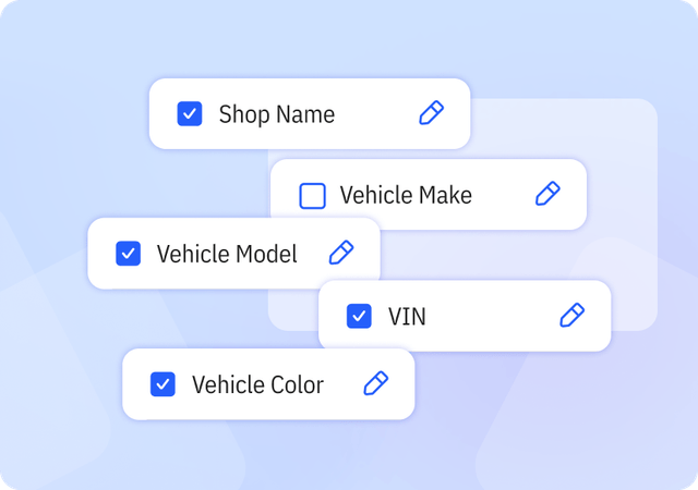 Includes essential and industry-specific fields designed for auto repair, with the flexibility to add or remove fields as needed.