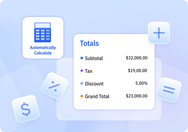 We offer Templates in Excel that automatically calculate subtotal, tax, discount, and grand total amounts to reduce errors.